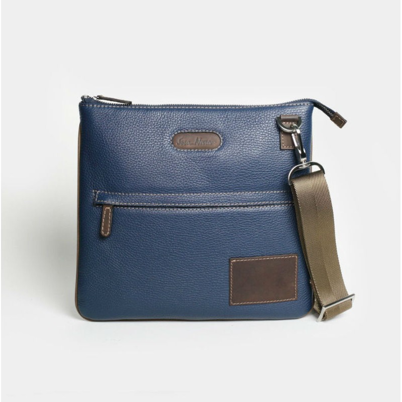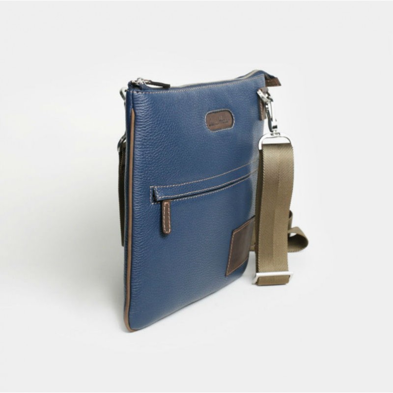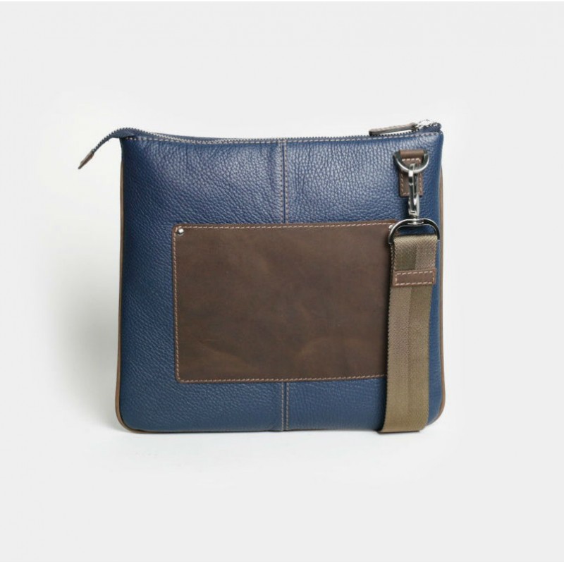 - Кожаная сумка мужская IssaHara В9-05 (13-32) синяя с коричневым через плечо.