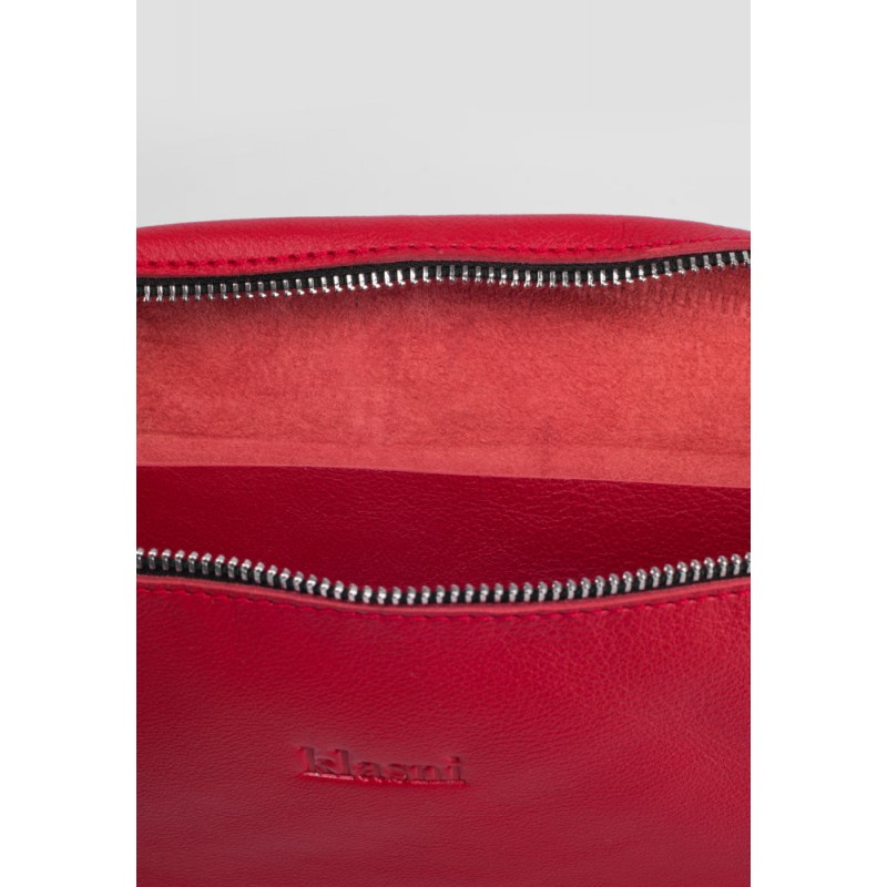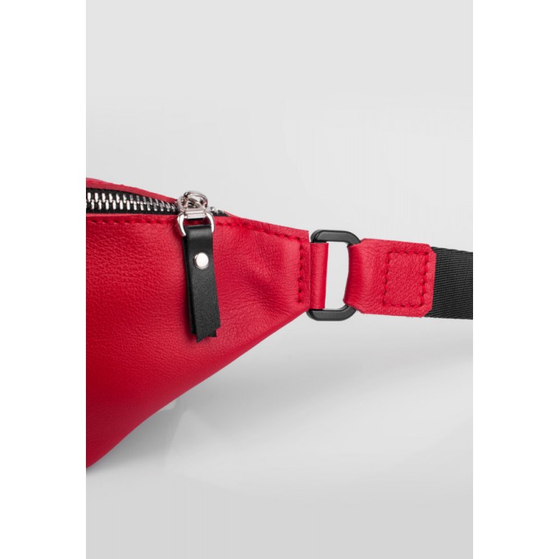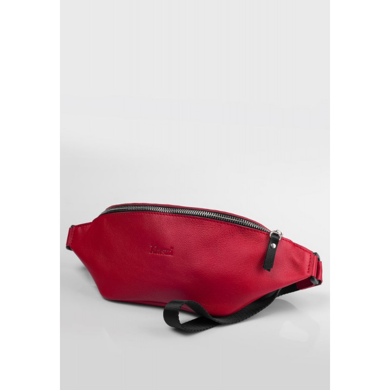 - Яркая кожаная сумка поясная Klasni Walk красная К-01-08-01-3.