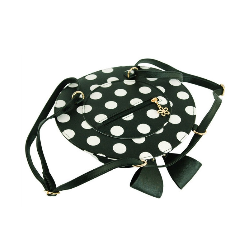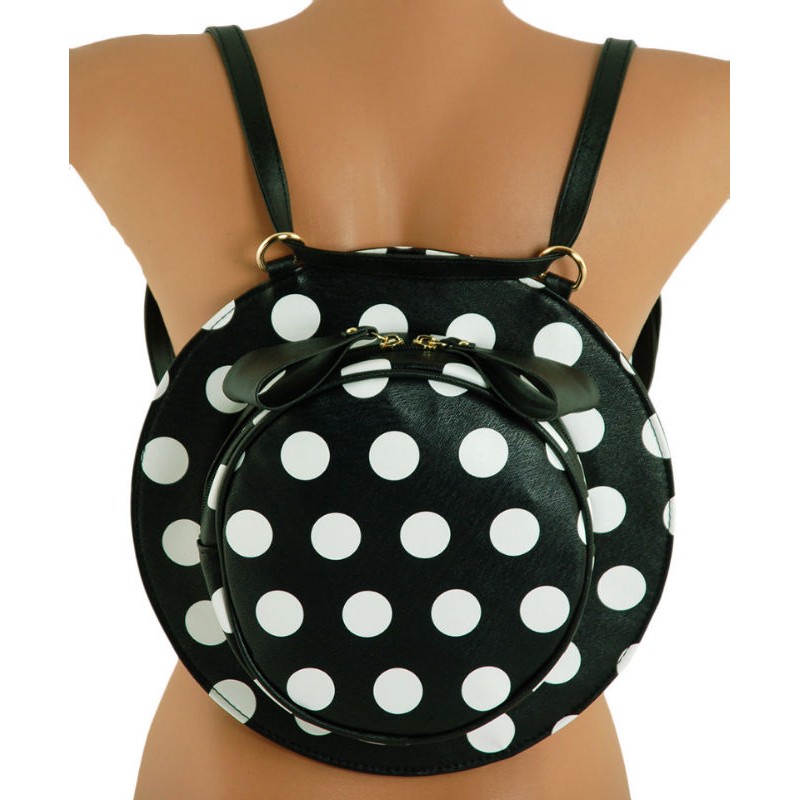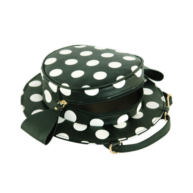- Оригинальная сумочка-рюкзак 7214-20 черная в форме шляпки в горох.