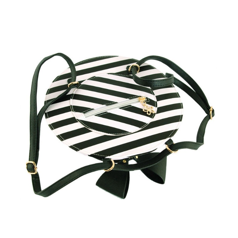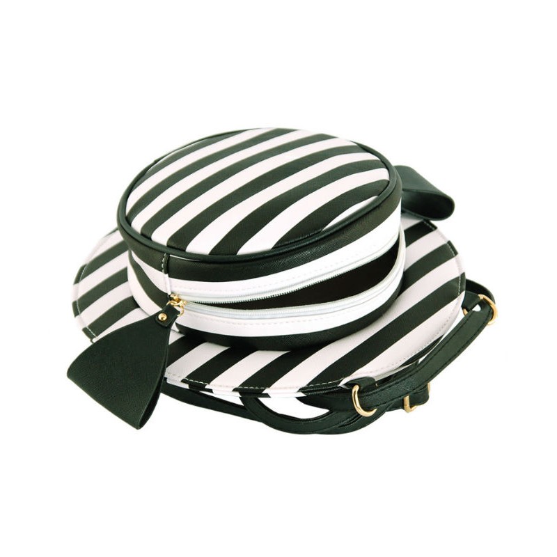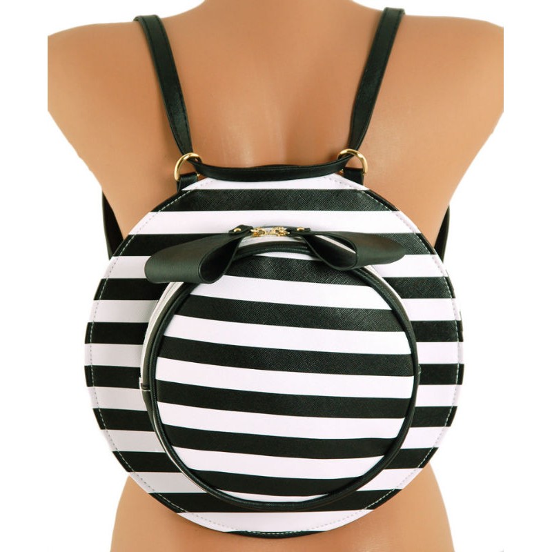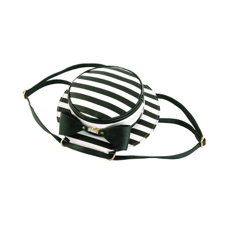 - Оригинальная сумочка-рюкзак 7214-21 черно-белая полоски в форме шляпки.