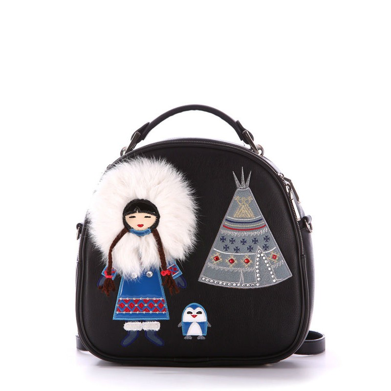- Сумка-рюкзак Alba Soboni 172959 черный украшен вышивкой, аппликацией и стразами.