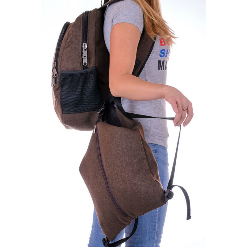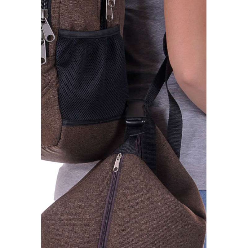 - Сумка рюкзак XYZ Cosy СР196 Шоколад выполнена из ткани с плетением.