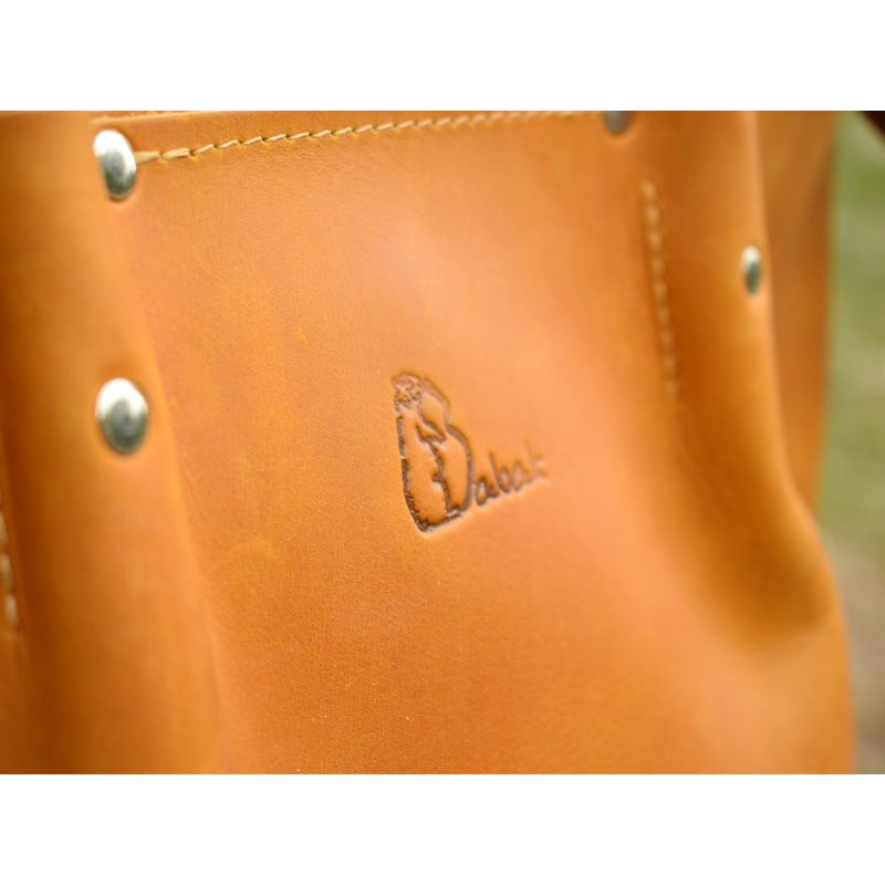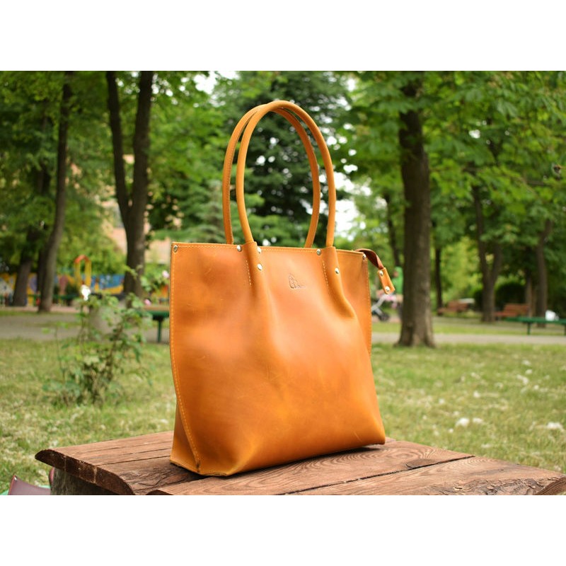 - Кожаная сумка Shopper Camel 894079 трапецевидной формы цвета Camel.