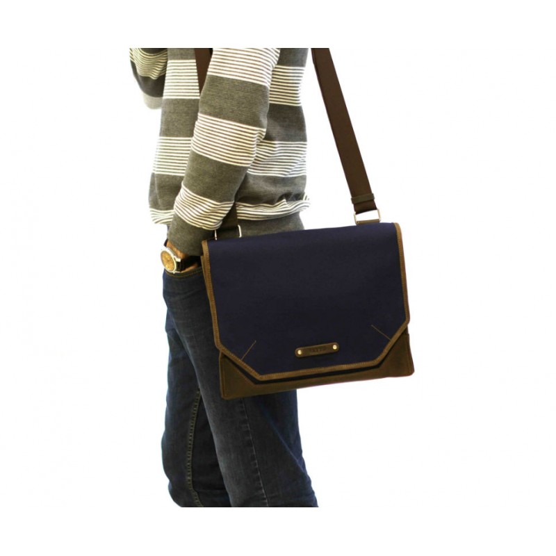 - Сумка текстильная VATTO МT21Hl2Kr450 синяя с вставками из коричневой кожи.