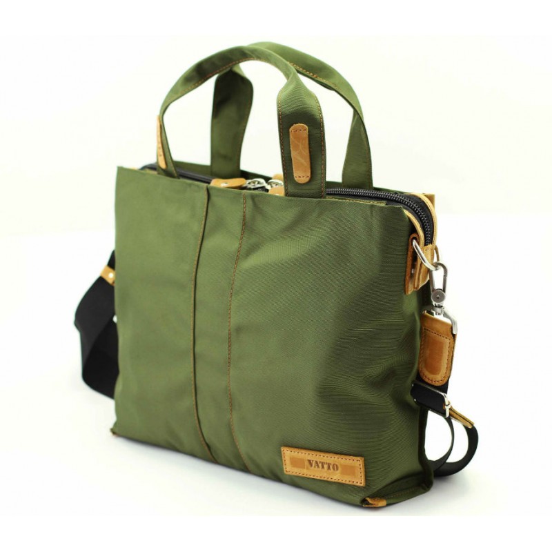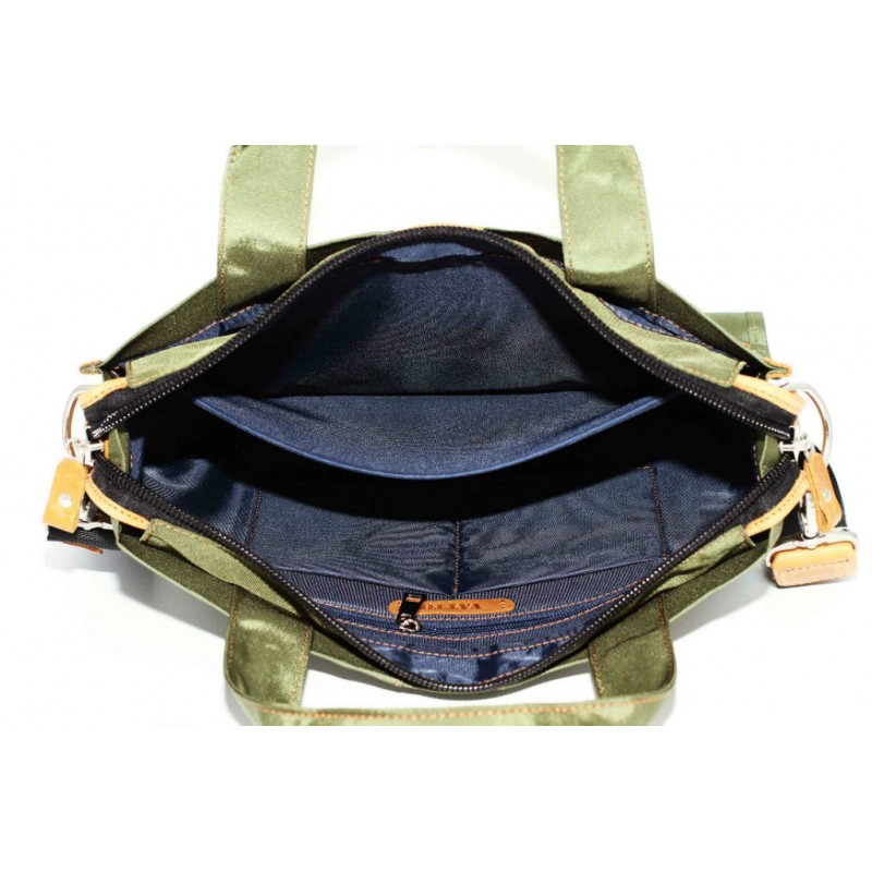 - Сумка текстильная VATTO T32.1 N6 Kr190. зеленая с рыжими кожаными вставками.
