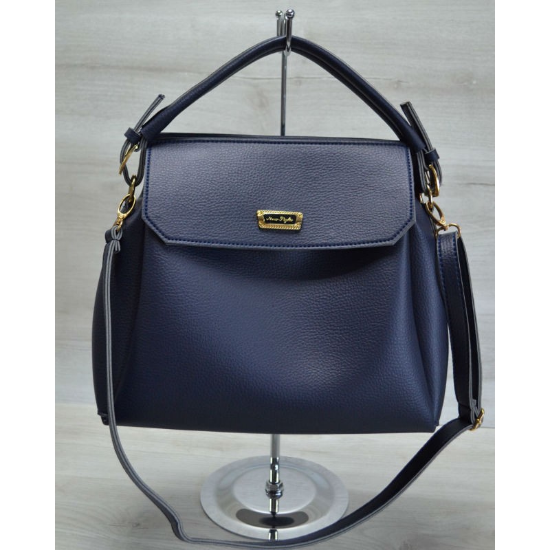 - Шикарная женская сумка Welassie на три отделения синего цвета 54003.