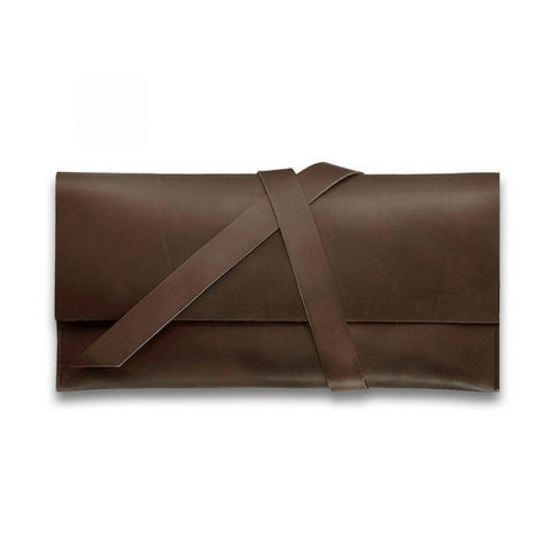 Тревел-кейс 1.0 орех застегивается при помощи специальной кожаной ленты, которой необходимо обернуть его, а конец закрепить, можно как на фото, либо другим способом.