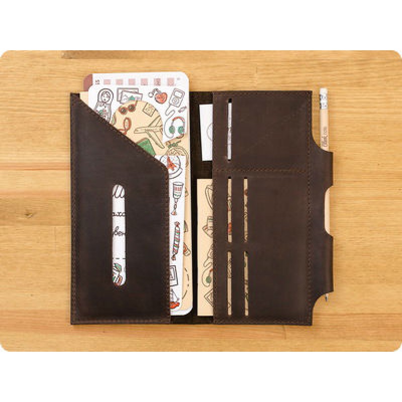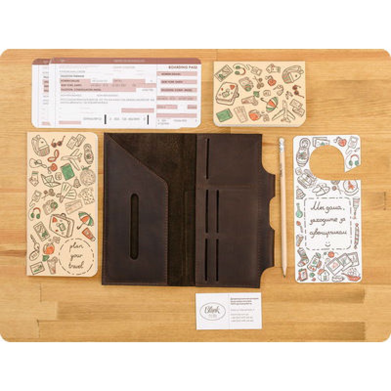 Внутри достаточно места для паспорта, билетов, карточек, денег. Есть отдел для карандаша - очень удобно.
