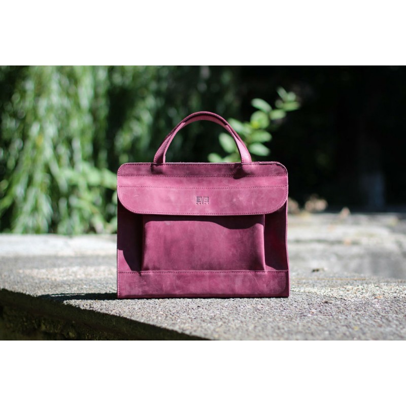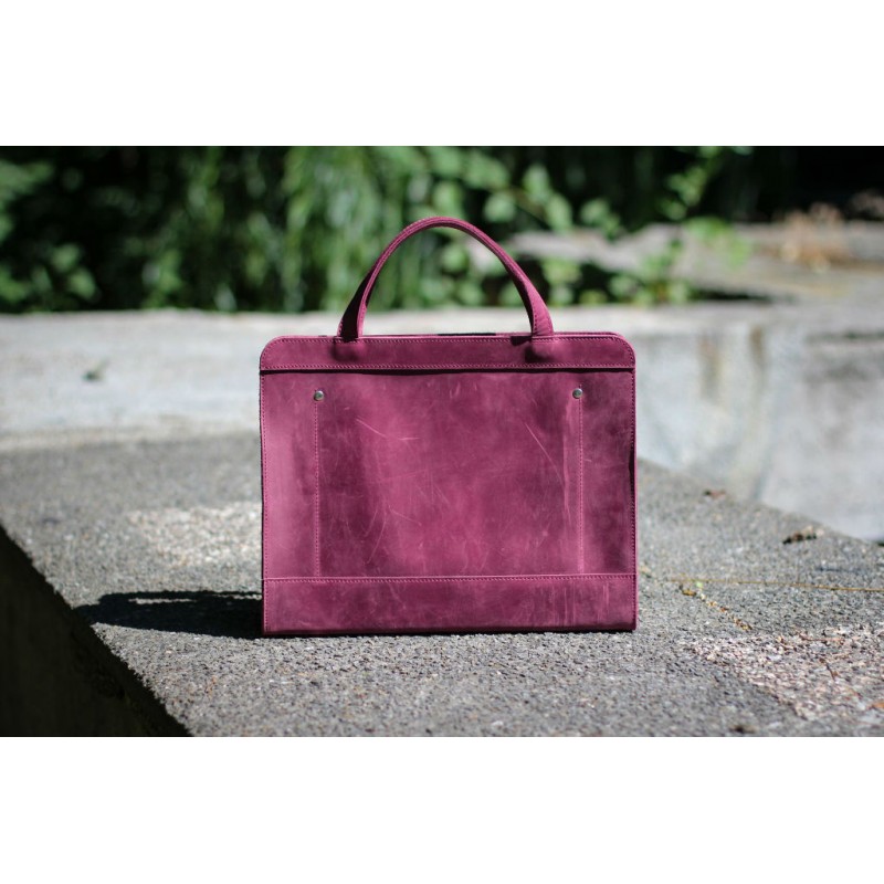 - Шкіряна сумка-портфель "Карабас" бордова виготовлений з натуральної вінтажній шкіри Крейзі Хорс.