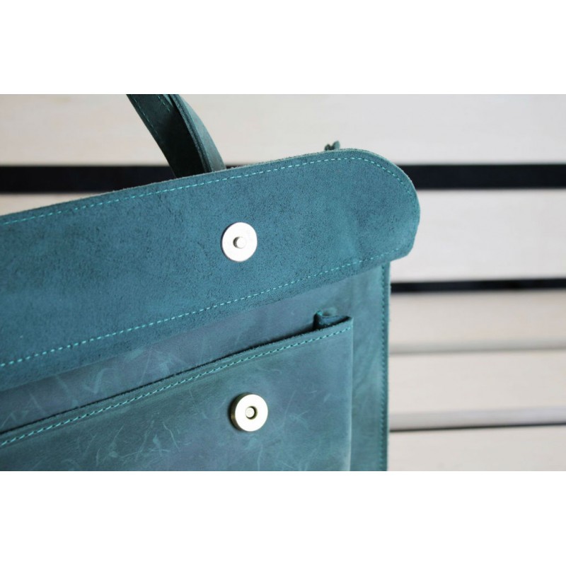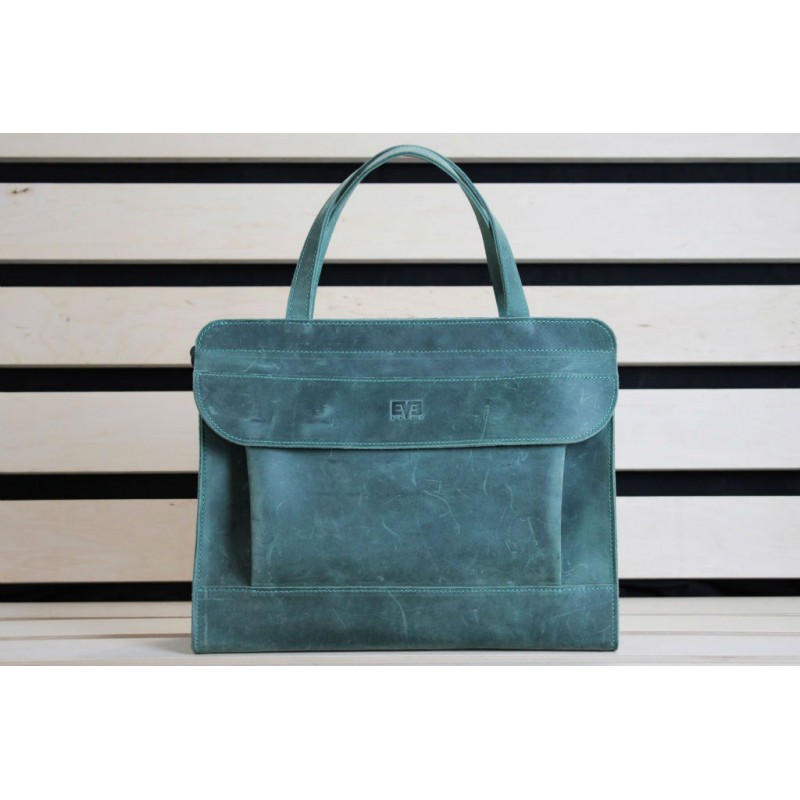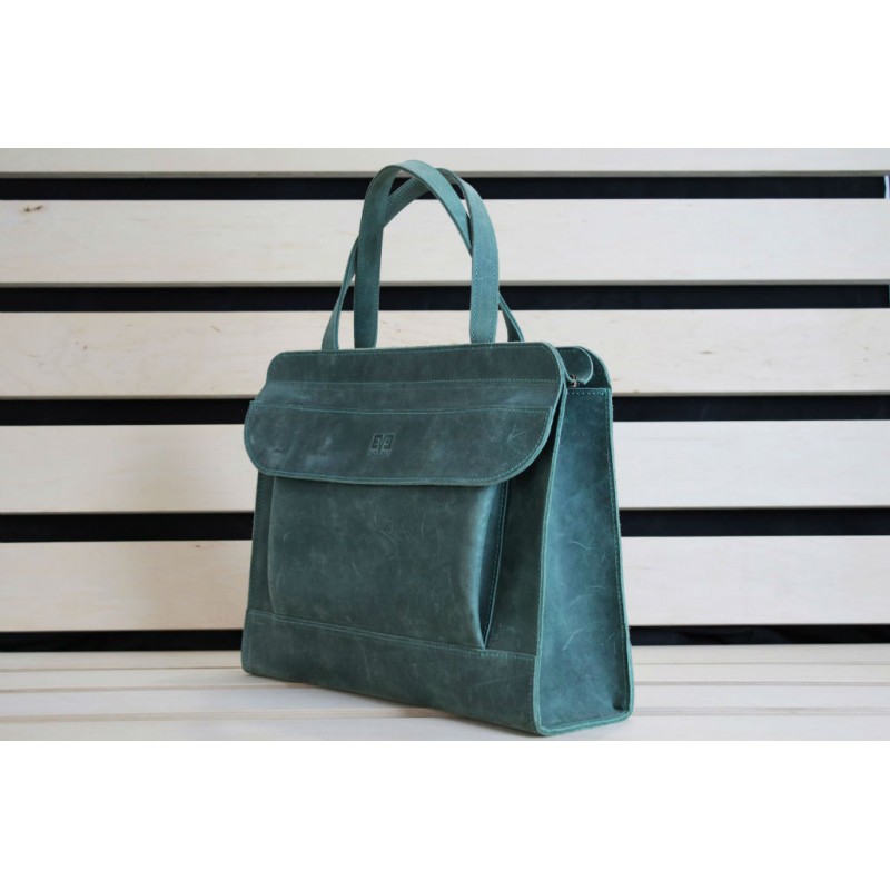- Шкіряна сумка-портфель "Карабас" зелена виконаний з вінтажній шкіри Crazy Horse.