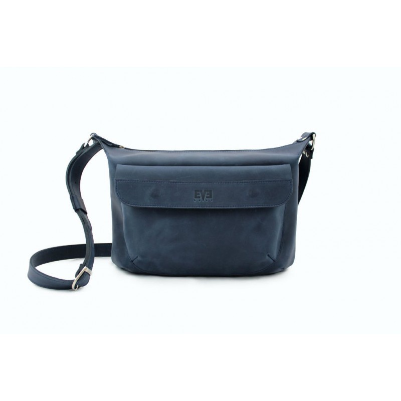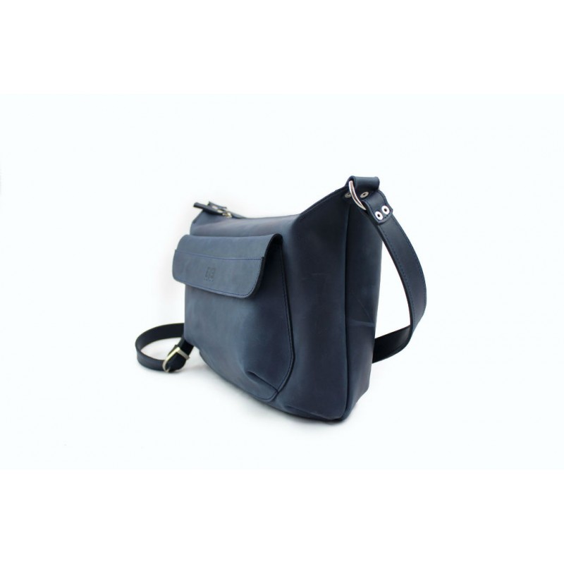- Жіноча шкіряна сумка "Кенгуру" синя ручної роботи на плече.