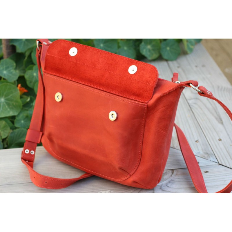 - Жіноча шкіряна сумка "Кенгуру" червона на плече з натуральної шкіри.