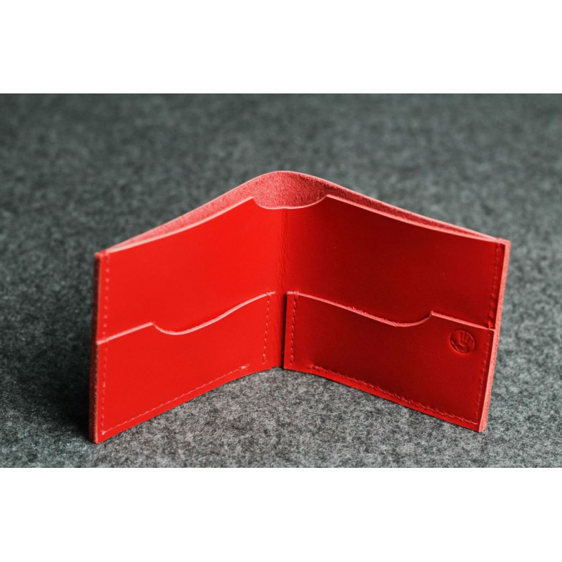 - Чоловічий шкіряний гаманець "Мікро" червоний ручної роботи з натуральної гладкої шкіри Кайзер.