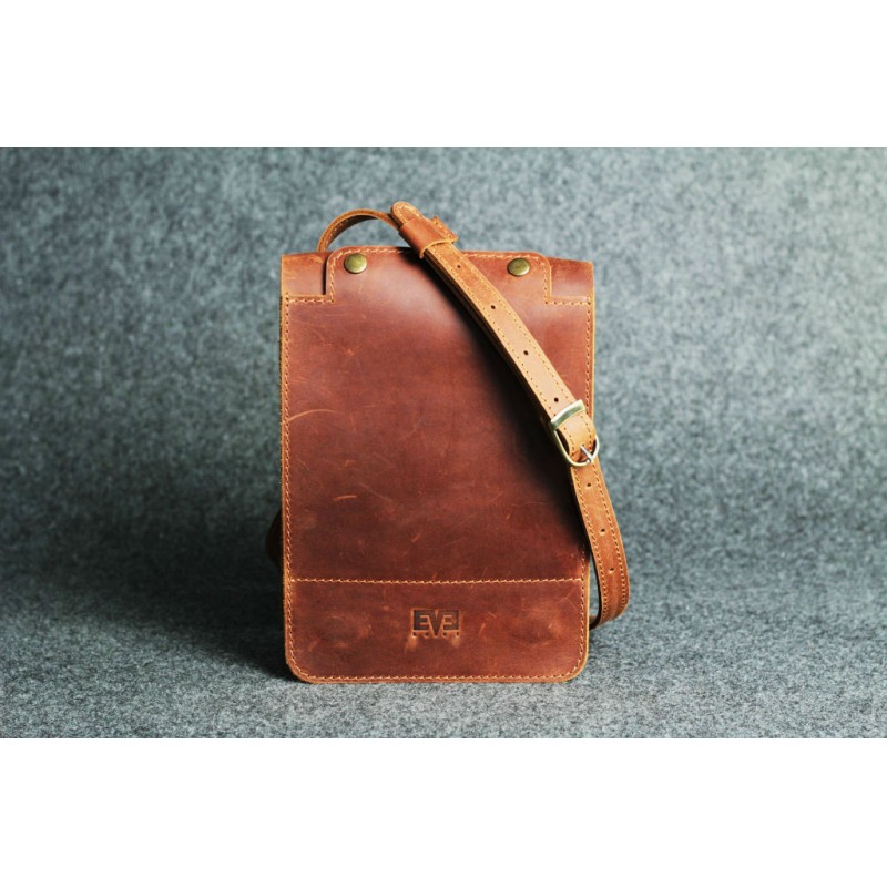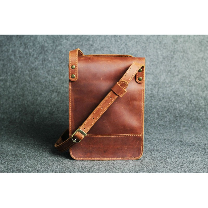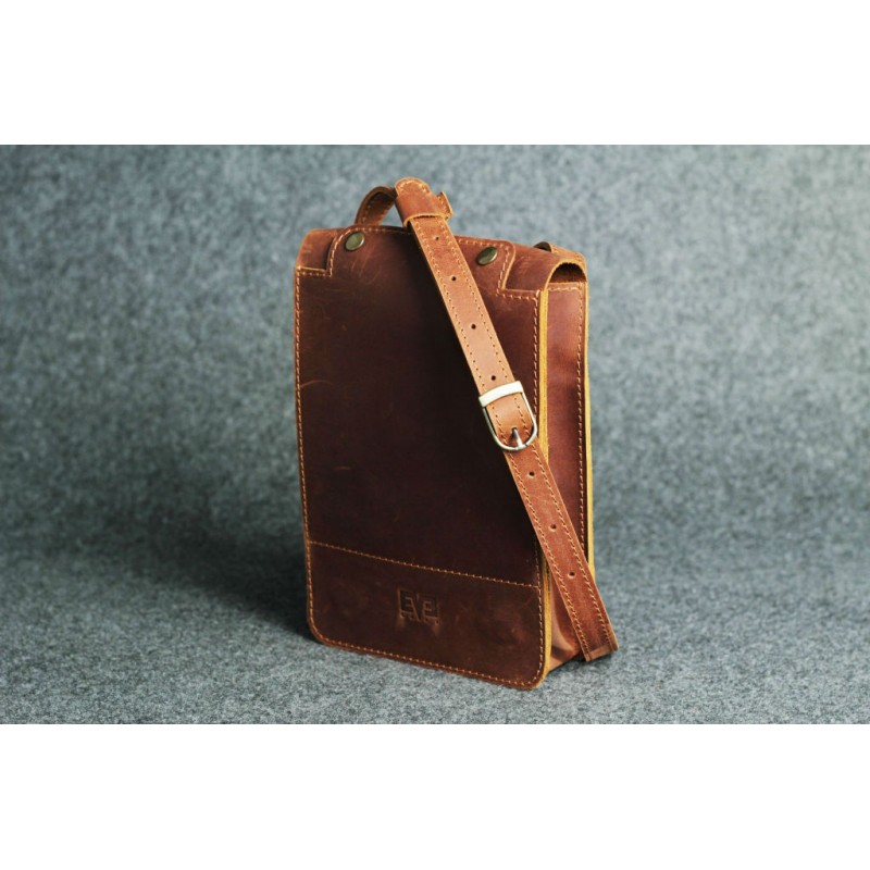 - Чоловіча шкіряна сумка "Планшетник - S" темно-руда ручної роботи виконана з вінтажній натуральної шкіри Crazy Horse.