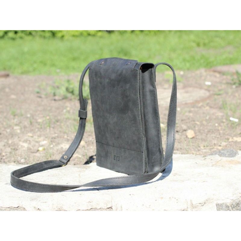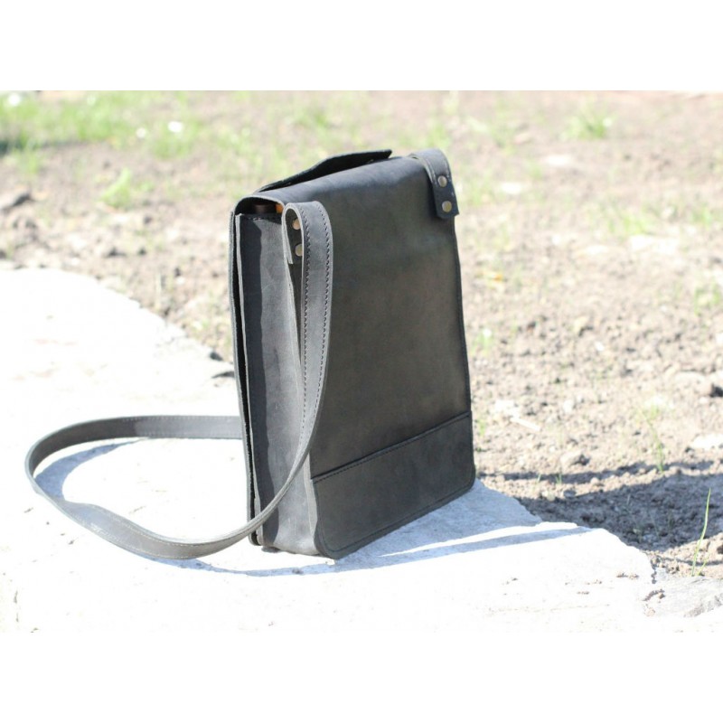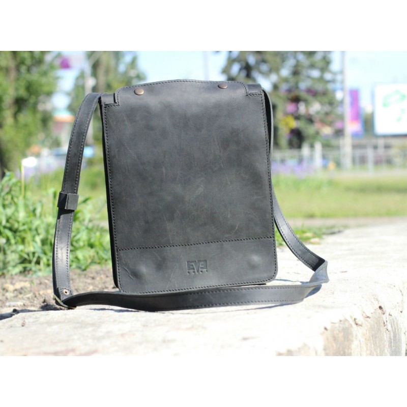- Чоловіча шкіряна сумка "Планшетник - М" чорна через плече з вінтажній шкіри.