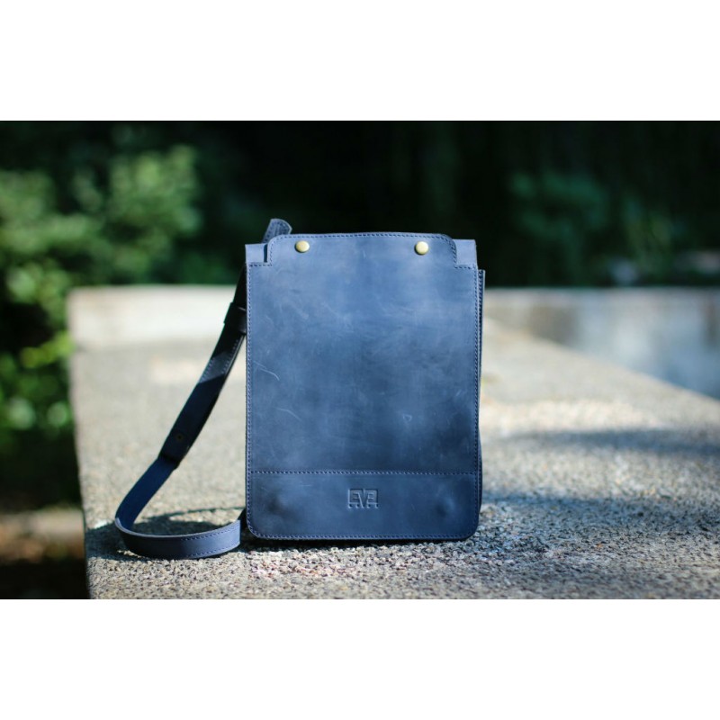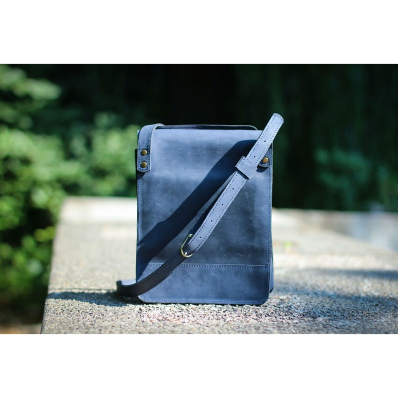 - Чоловіча шкіряна сумка "Планшетник - М" синя ручної роботи через плече з натуральної шкіри Crazy Horse.