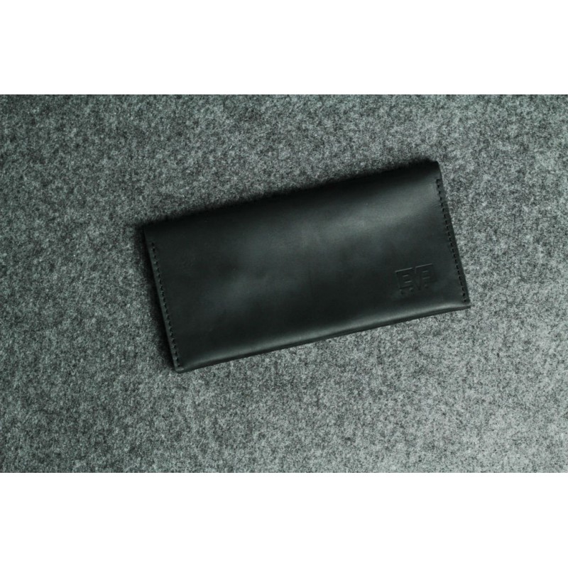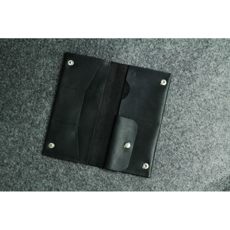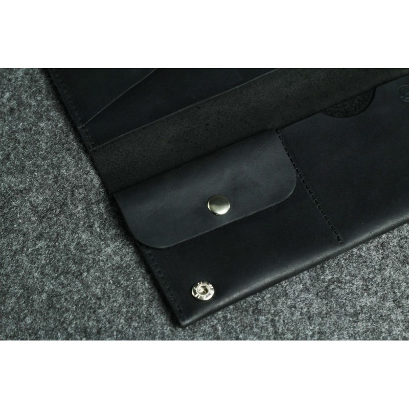 - Чоловічий шкіряний гаманець "Тревел-міні" чорний ручної роботи з натуральної гладкої шкіри.