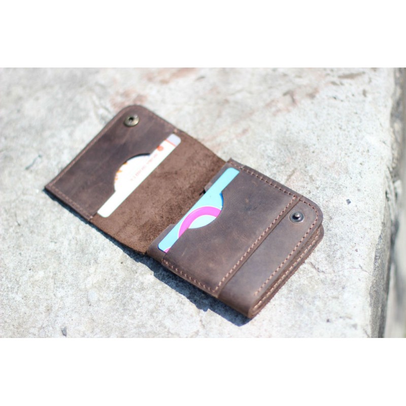 - Чоловічий шкіряний гаманець "Лівий" коричневий виготовлений з натуральної шкіри Crazy Horse.