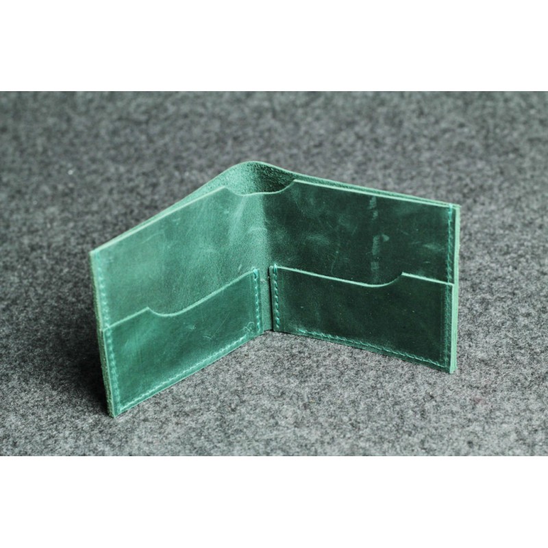 - Чоловічий шкіряний гаманець "Мікро" зелений виконана з натуральної шкіри Крейзі Хорс.
