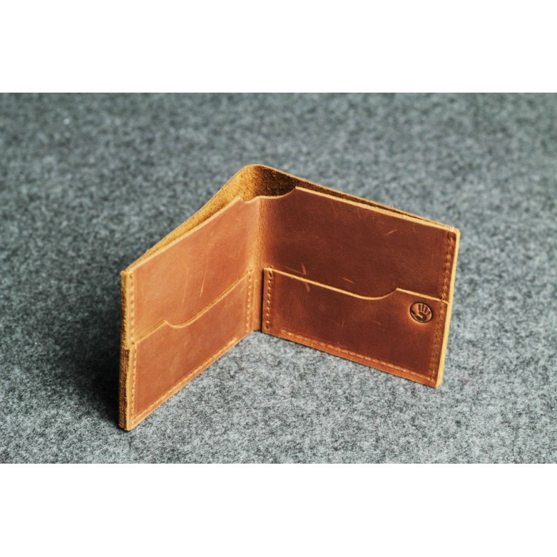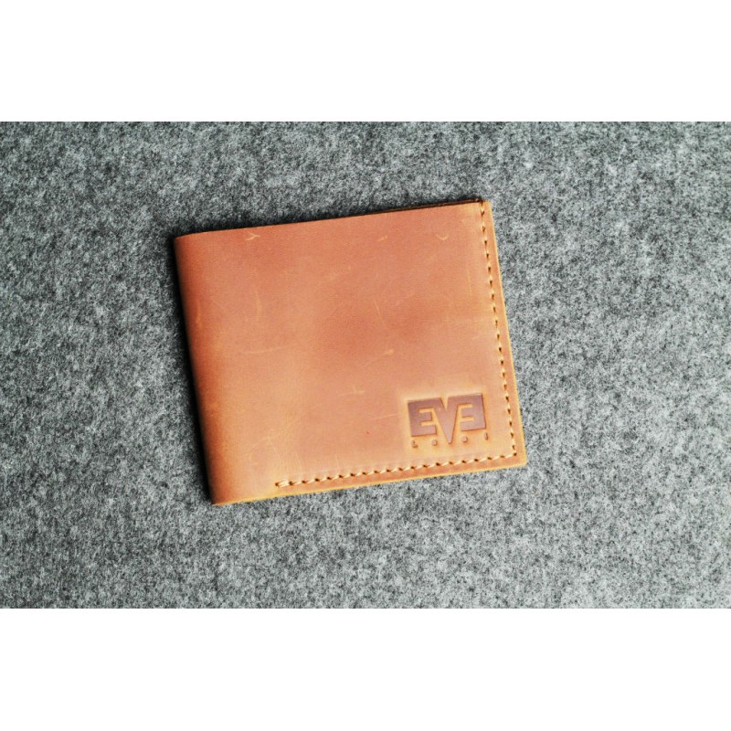 - Чоловічий шкіряний гаманець "Мікро" світло-рудий виготовлена з натуральної шкіри Crazy Horse.