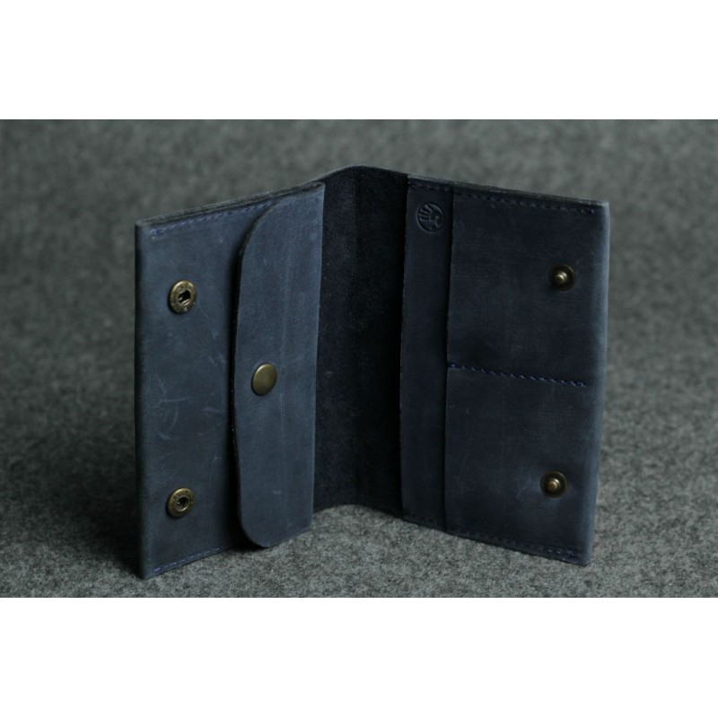 - Шкіряна обкладинка для паспорта "Паспарту" синя ручної роботи, виконана з натуральної шкіри Crazy Horse.