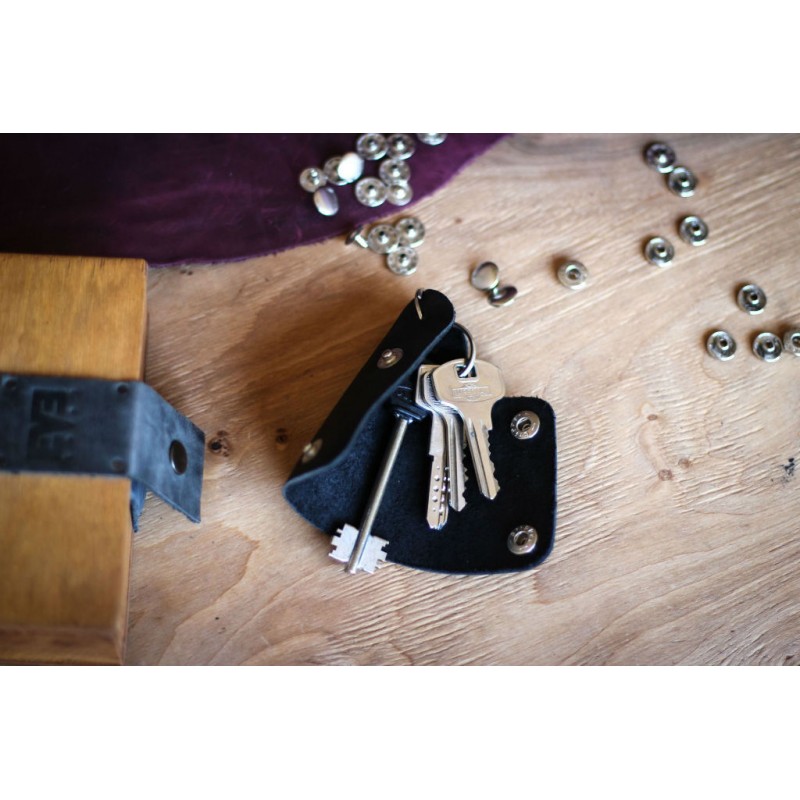 - Шкіряна ключниця чорна виконана з натуральної вінтажній шкіри Crazy Horse.