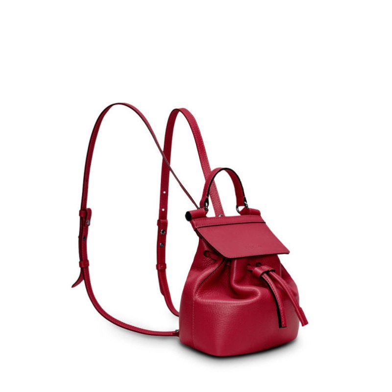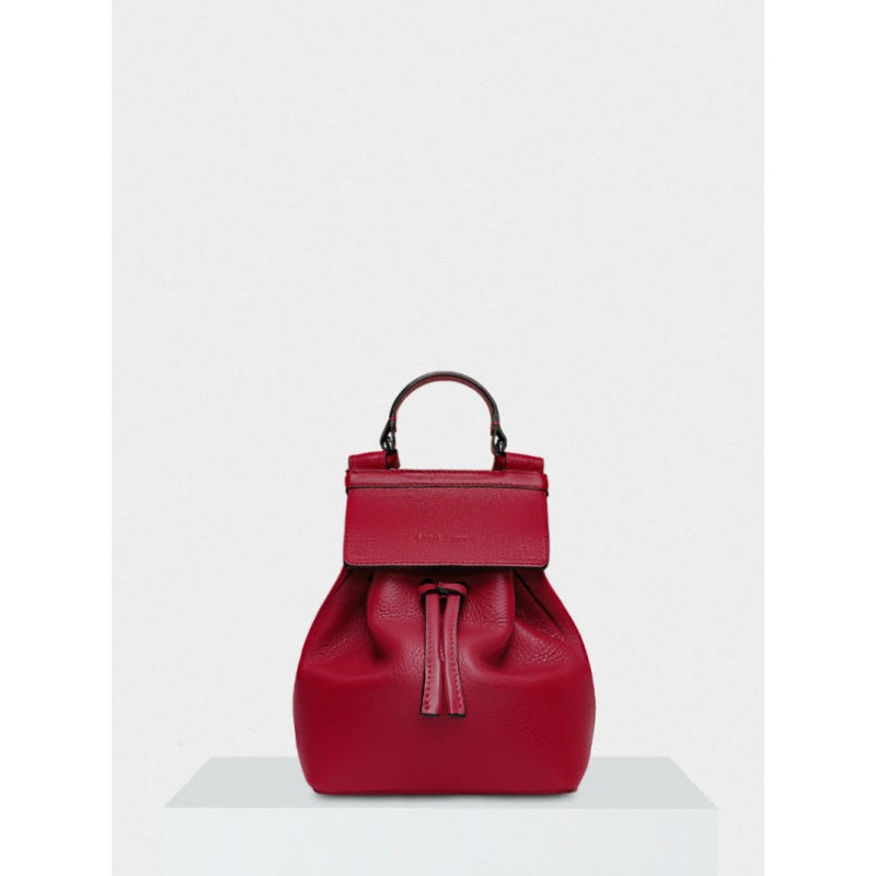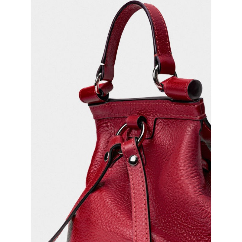 Незвичайна жіноча шкіряна сумка-рюкзак Adelle 042/850/Lu бордового кольору виконана в цікавому стилі. Зверху модель плеската, а до низу набуває об'ємну форму мішечка.