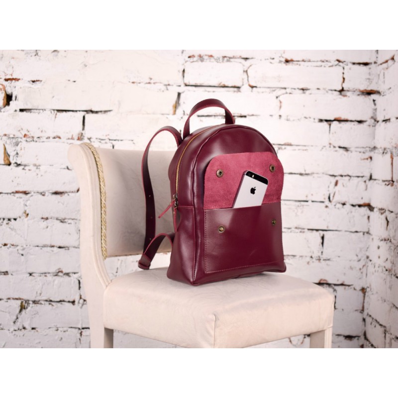 - Рюкзак шкіряний BABAK Terra bord 873094 бордовий виготовлений з гладкої натуральної шкіри Modena.