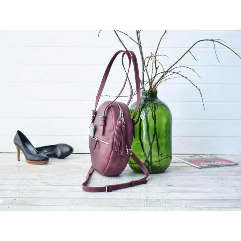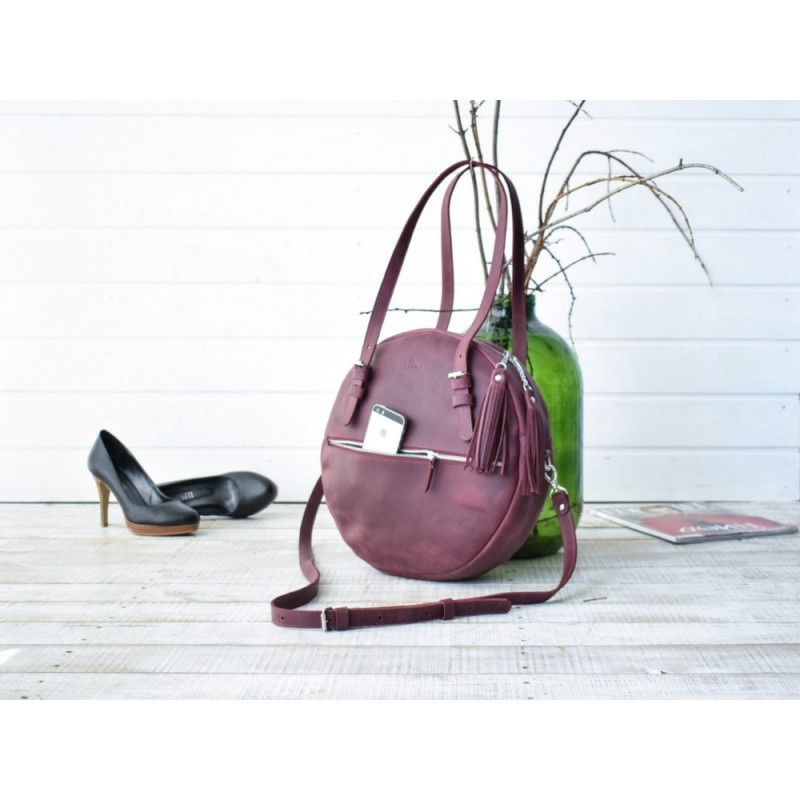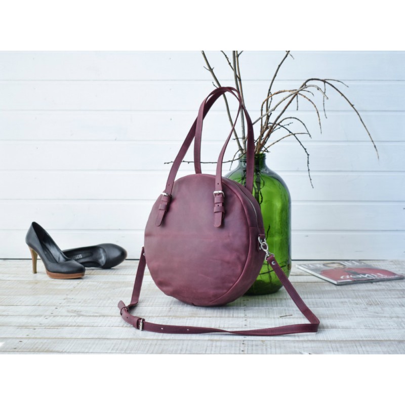 - Стильна і містка кругла жіноча сумка шкіряна BABAK Round 916066 марсала.