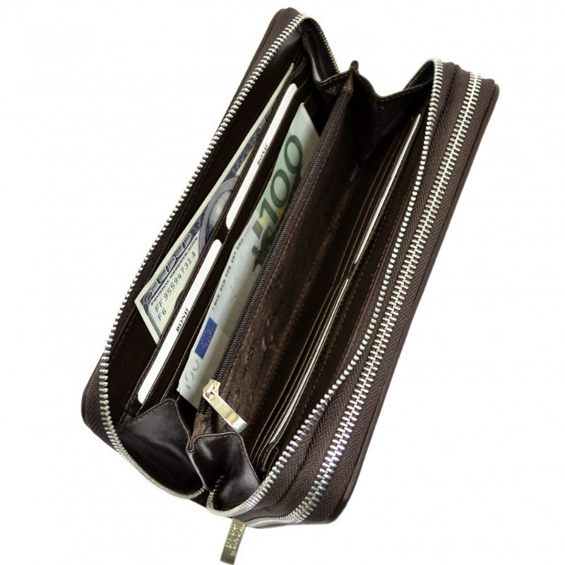 - У першому відділі: 2 основних відділення, кишеня-перегородка на блискавці, 2 додаткових кишені, 12 кишень для кредитних або дисконтних карток.