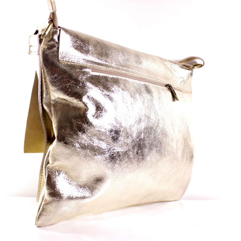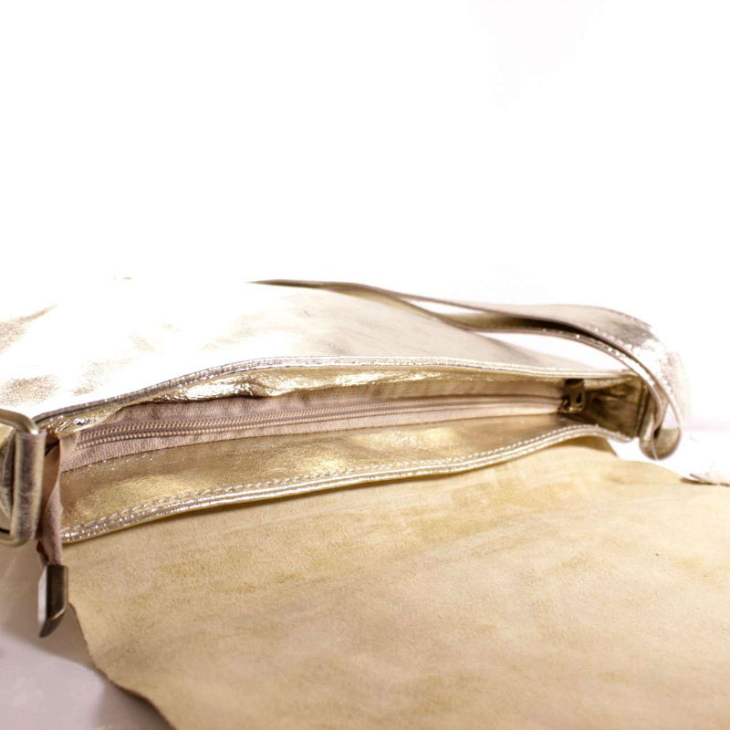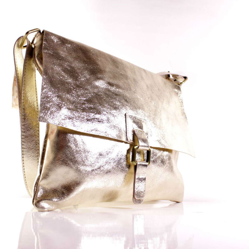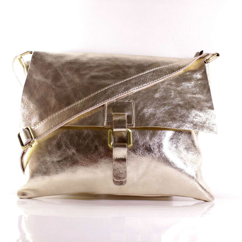 - італійська Жіноча шкіряна сумка почтальонка BI00-39 срібляста.