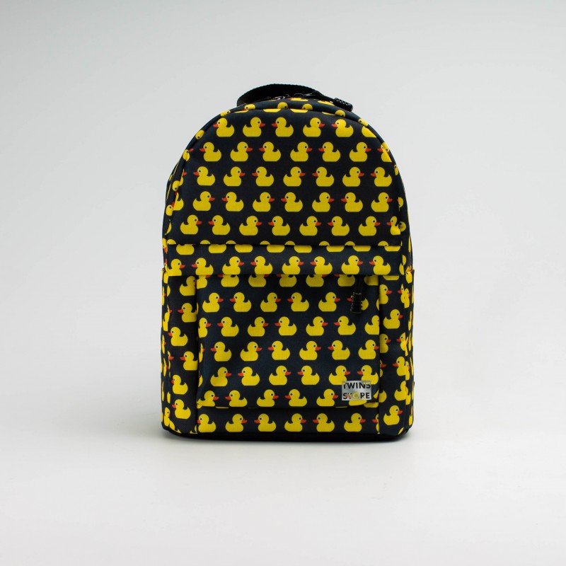 - Чорний рюкзак mini з качками TWINSSTORE Р94 об'ємом 12 літрів.