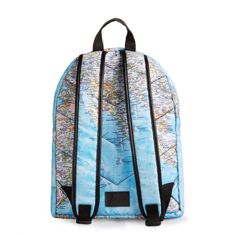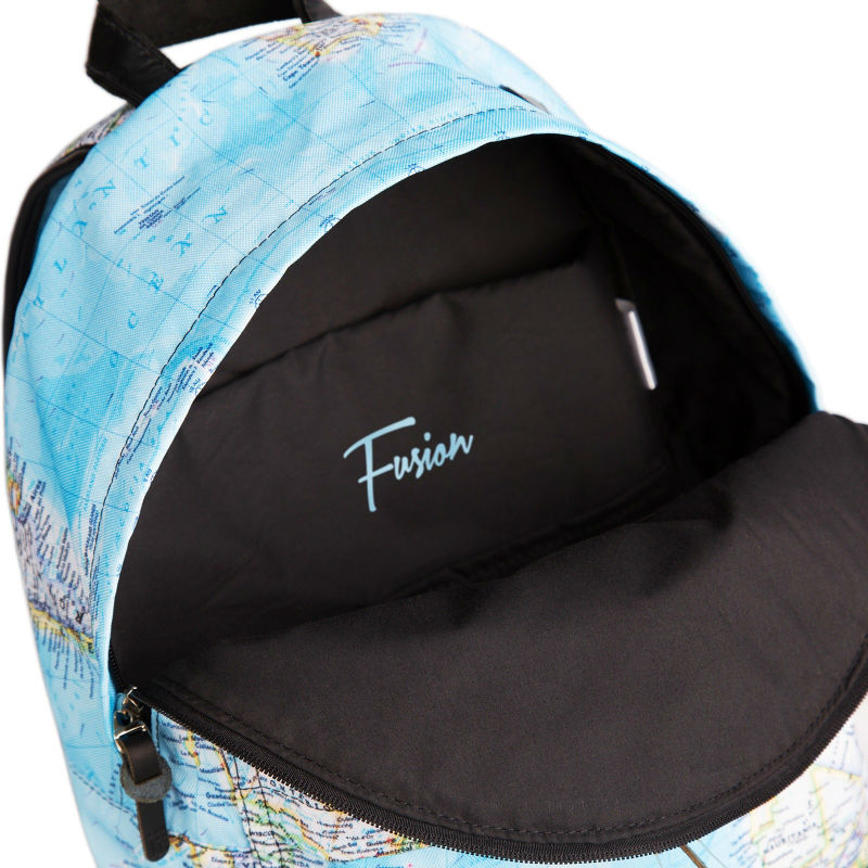 - Рюкзак FUSION MAPS блакитний з принтом карти світу.