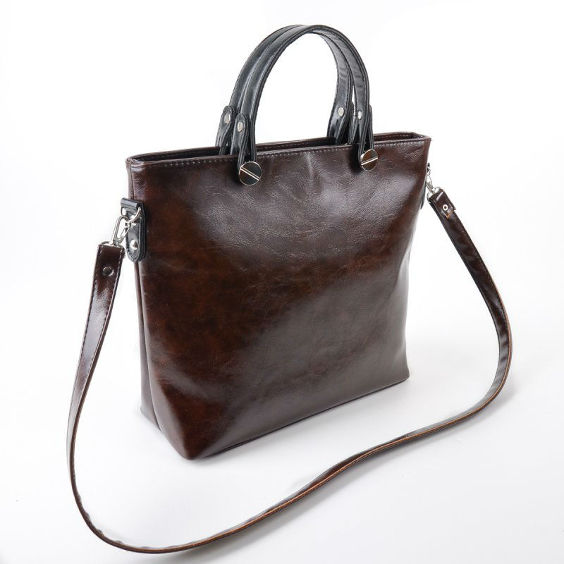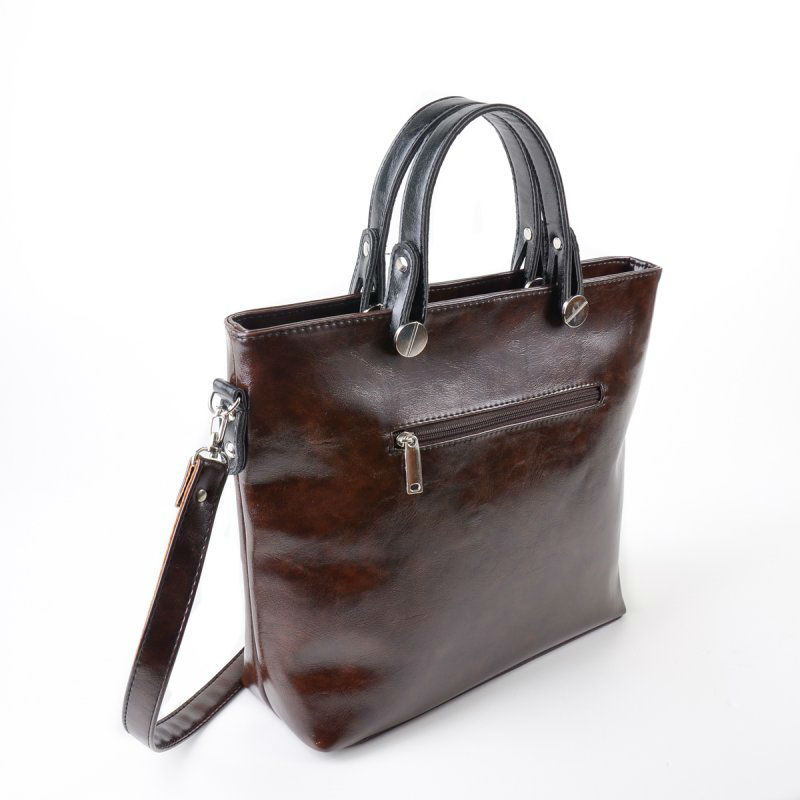 - Жіноча класична сумка М61-55/27 коричнева виконана з гладкої екошкіри.