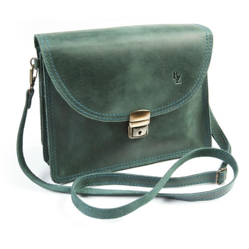 - Жіноча шкіряна сумка BOGZ «Ірен» P44M9S9 зелена з гладкої натуральної шкіри.