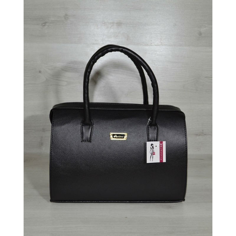 - Жіноча сумка Welassie Саквояж чорний гладкий 31129 з текстурою флотар.