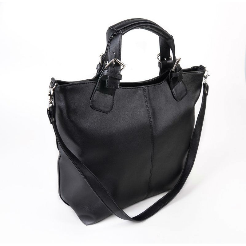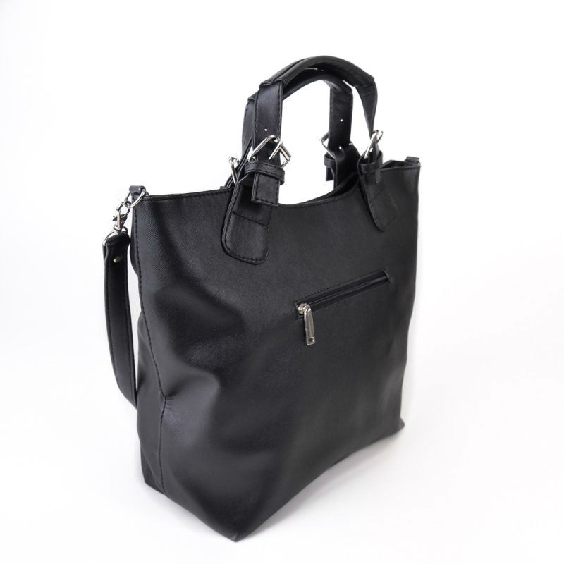 - Жіноча сумка-трапеція М51-46 чорна імітація під сап'янову шкіру.