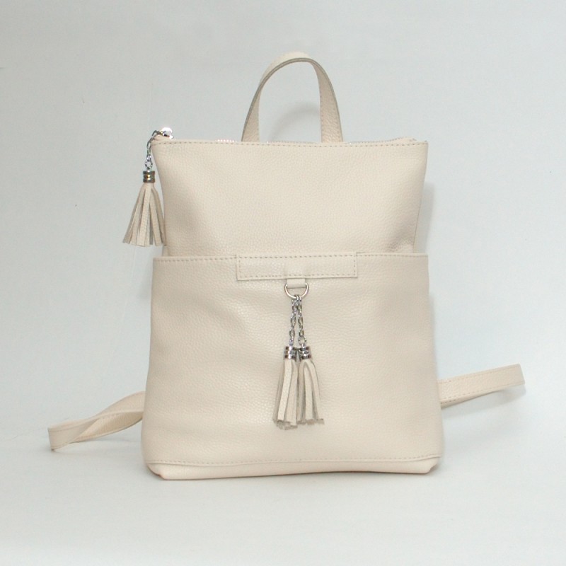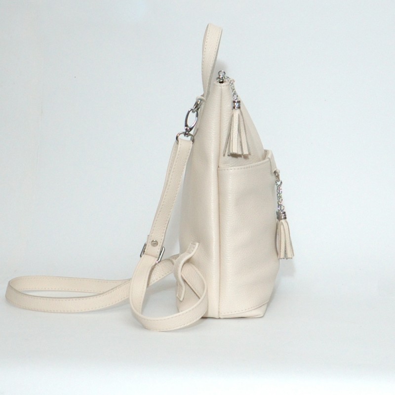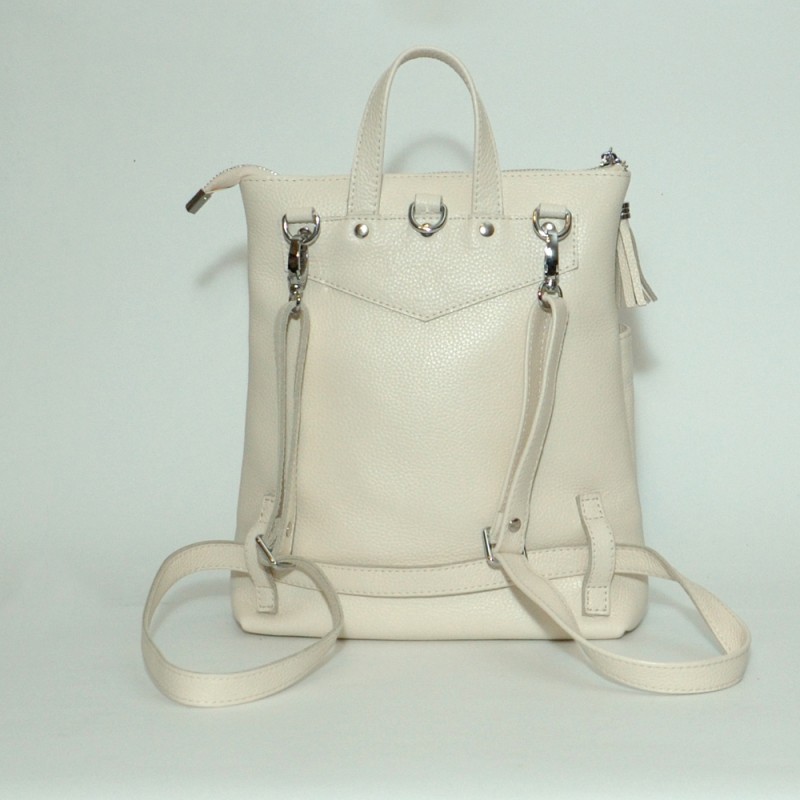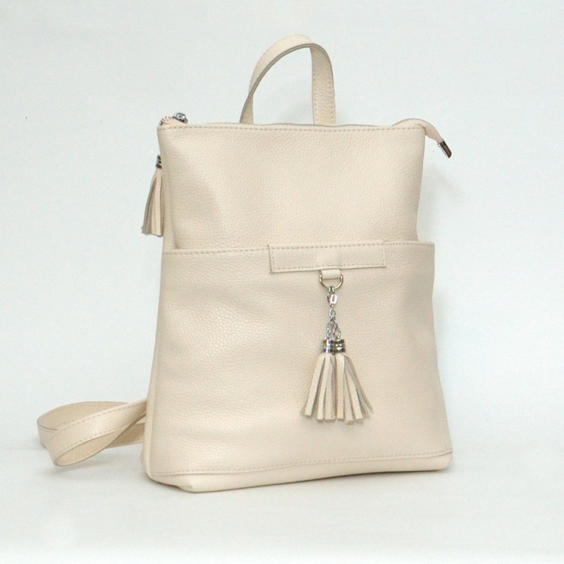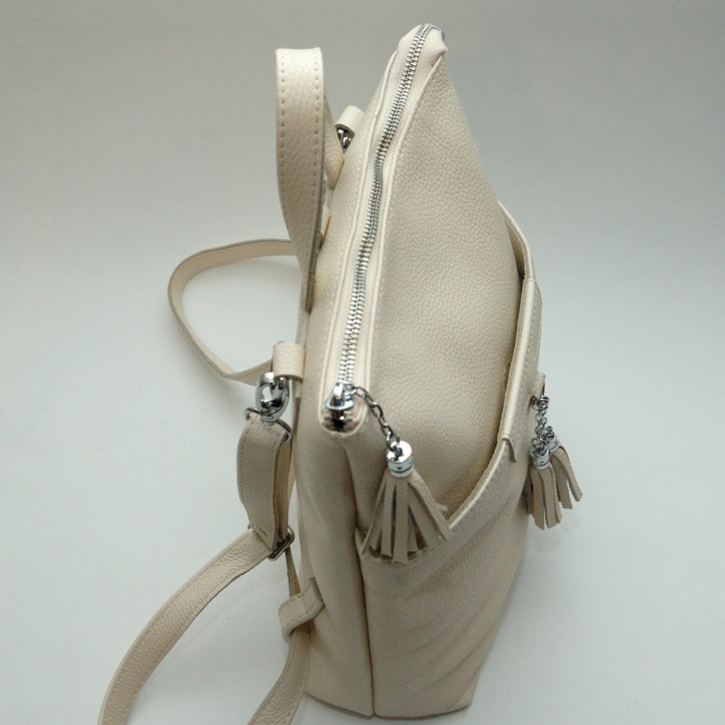 Жіночий шкіряний рюкзак-трансформер B050104-beige бежевий можна носити як рюкзак (на спині на 2 лямках) і як сумку (через плече).