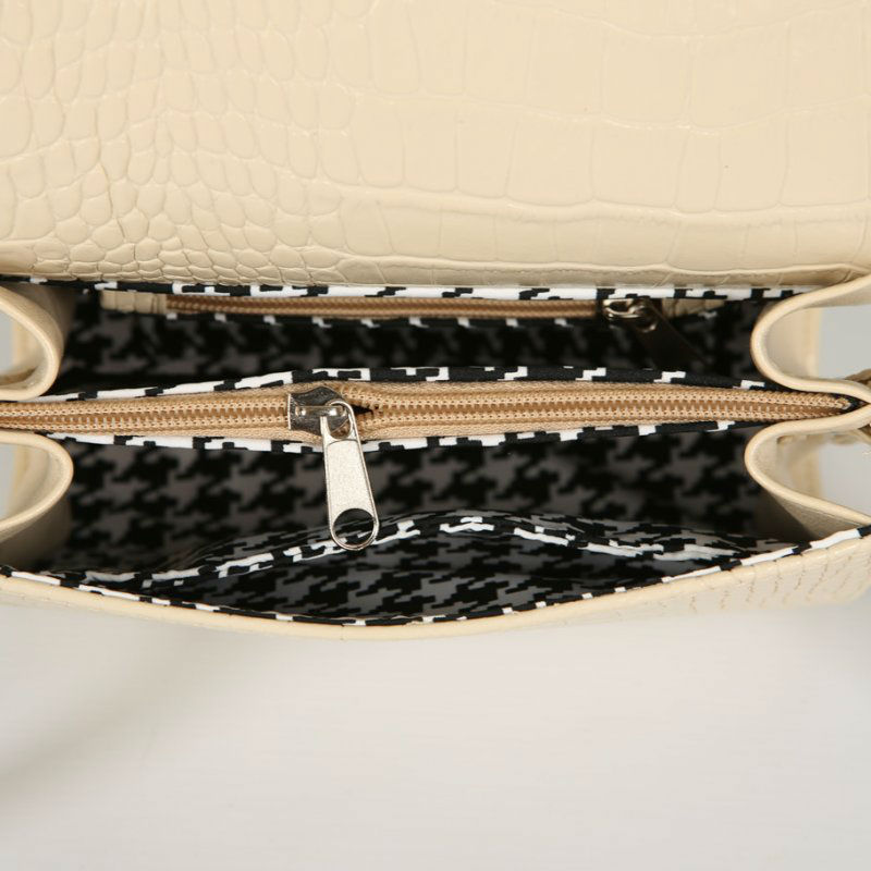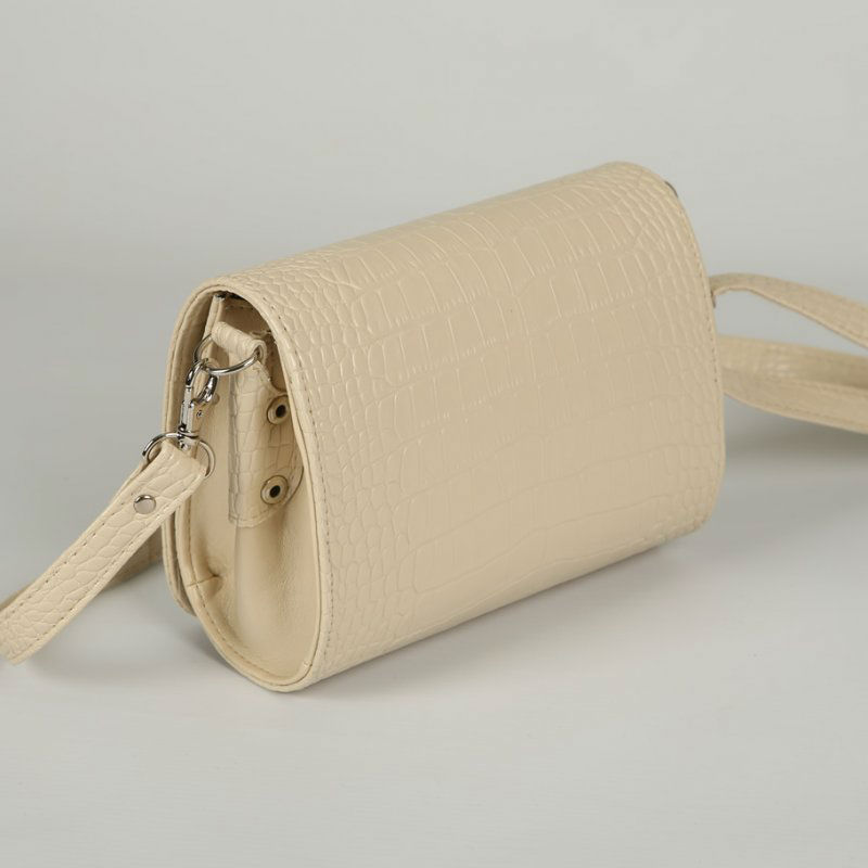 - Жіноча маленький клатч М69-12/66 бежевий з імітацією крокодилячої шкіри.