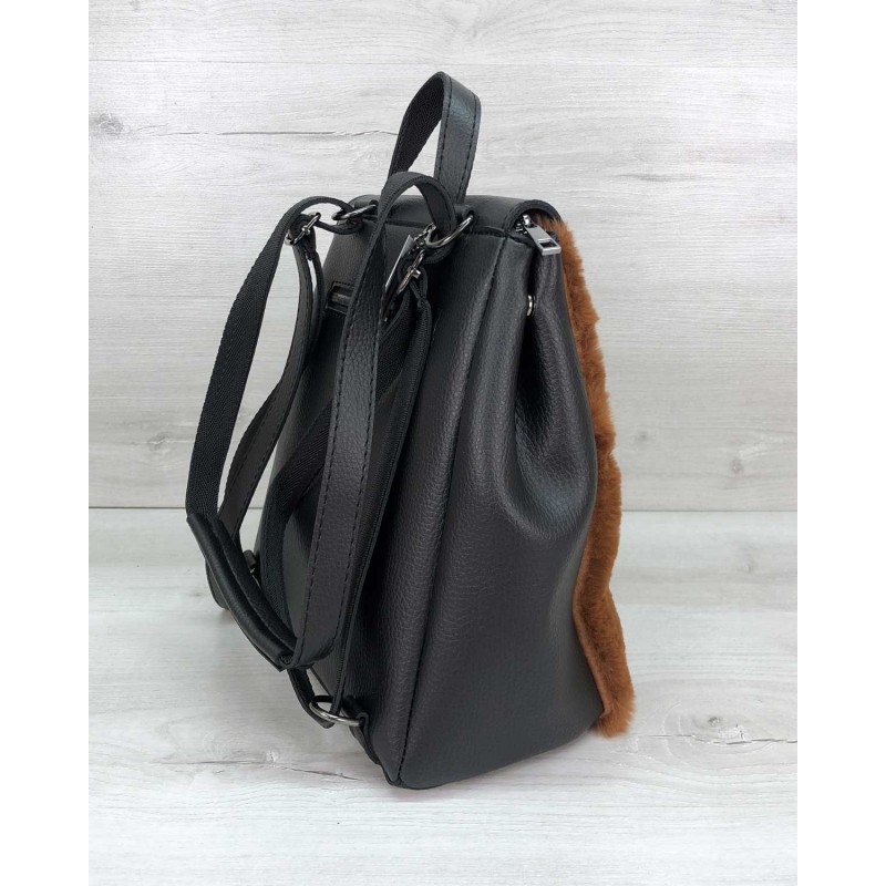 Жіночий рюкзак «Фабі» з рудим хутром Welassie T4001 з морозостійкої, пружної та щільної еко-шкіри високої якості.