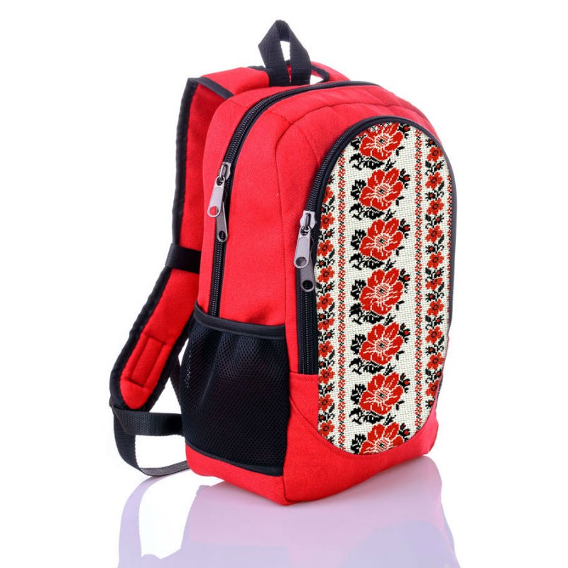 - Яскравий і місткий рюкзак міський XYZ New Design РГ18302 Орнамент Квіти червоний.