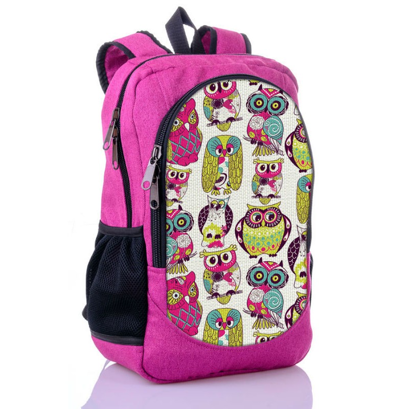 - Міський рюкзак XYZ New Design РГ18506 Совки малиновий з принтом сов.
