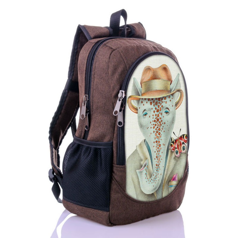 - Міський рюкзак XYZ New Design РГ18603 Слоник коричневий з цікавим принтом мультяшного слоника.