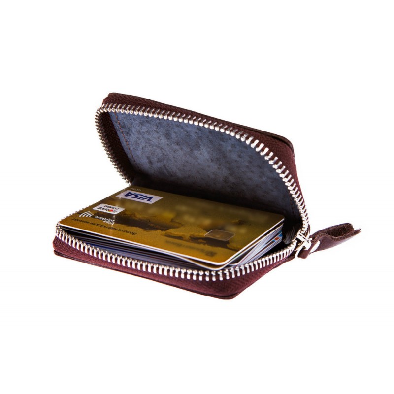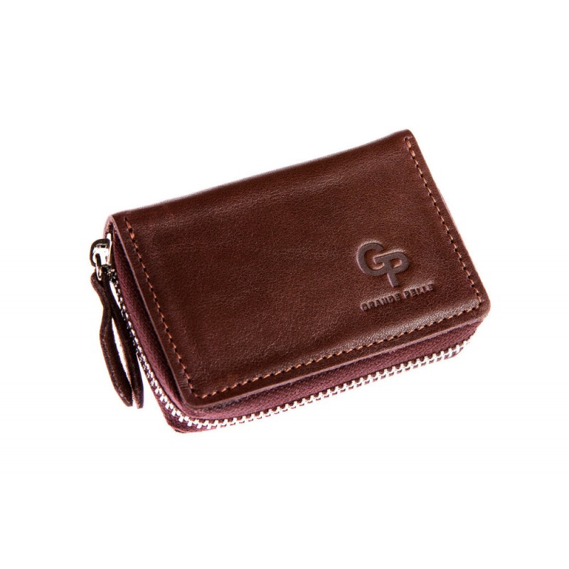 - Практична шкіряна візитниця на блискавці Grande Pelle 315623 бордо.
