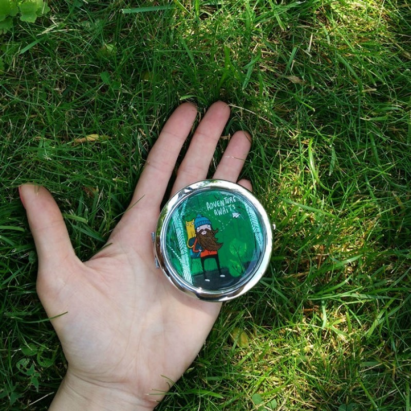 - Діаметр кишенькового дзеркала "Пригоди чекають" - 7 см, основа - високоякісна полірована сталь.