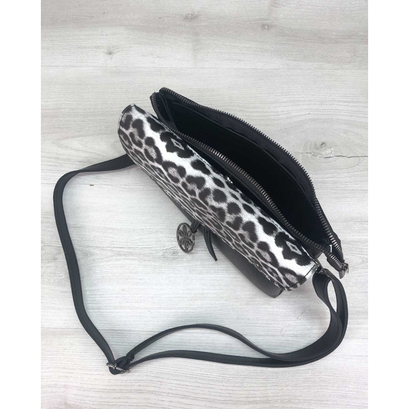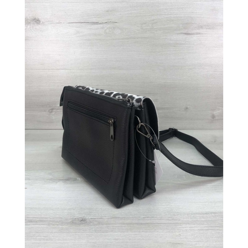 Сумочка має три відділення: один на блискавці й два на магнітах.