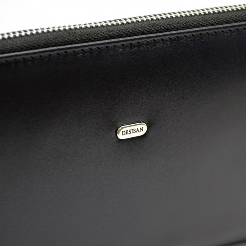 - Барсетка шкіра м'яка DESISAN 260-1 чорна гладка виготовлена з натуральної гладкої шкіри.