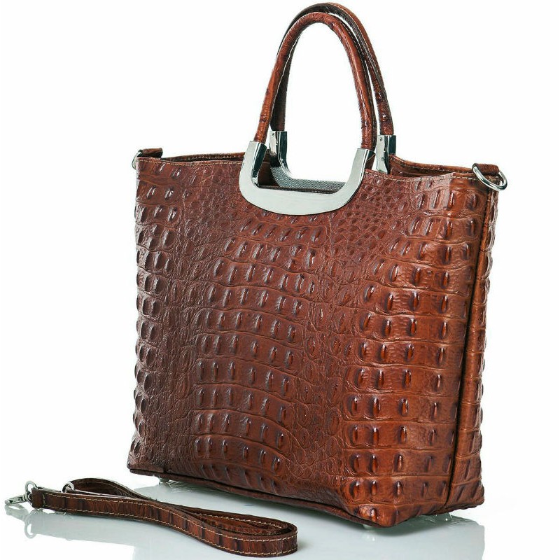 - Італійська жіноча сумка BC123-brown коричнева виготовлена з натуральної шкіри. Тиснення під крокодила.