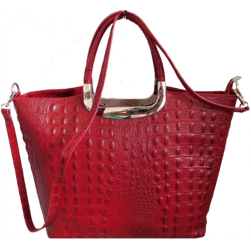 - Італійська жіноча сумка BC123-red червона виготовлена з високоякісної шкіри з тисненням під крокодила.