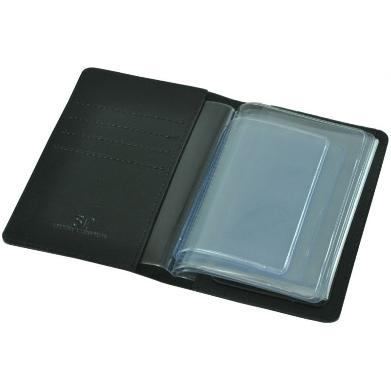 - Шкіряна обкладинка для паспорта і документів авто Multi чорна виготовлена з гладкої шкіри.